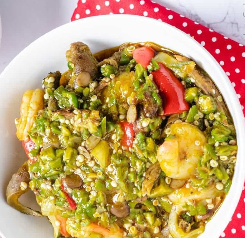 Deliciously thick and flavorful okra soup cooked to perfection, brimming with assorted meats and traditional spices.