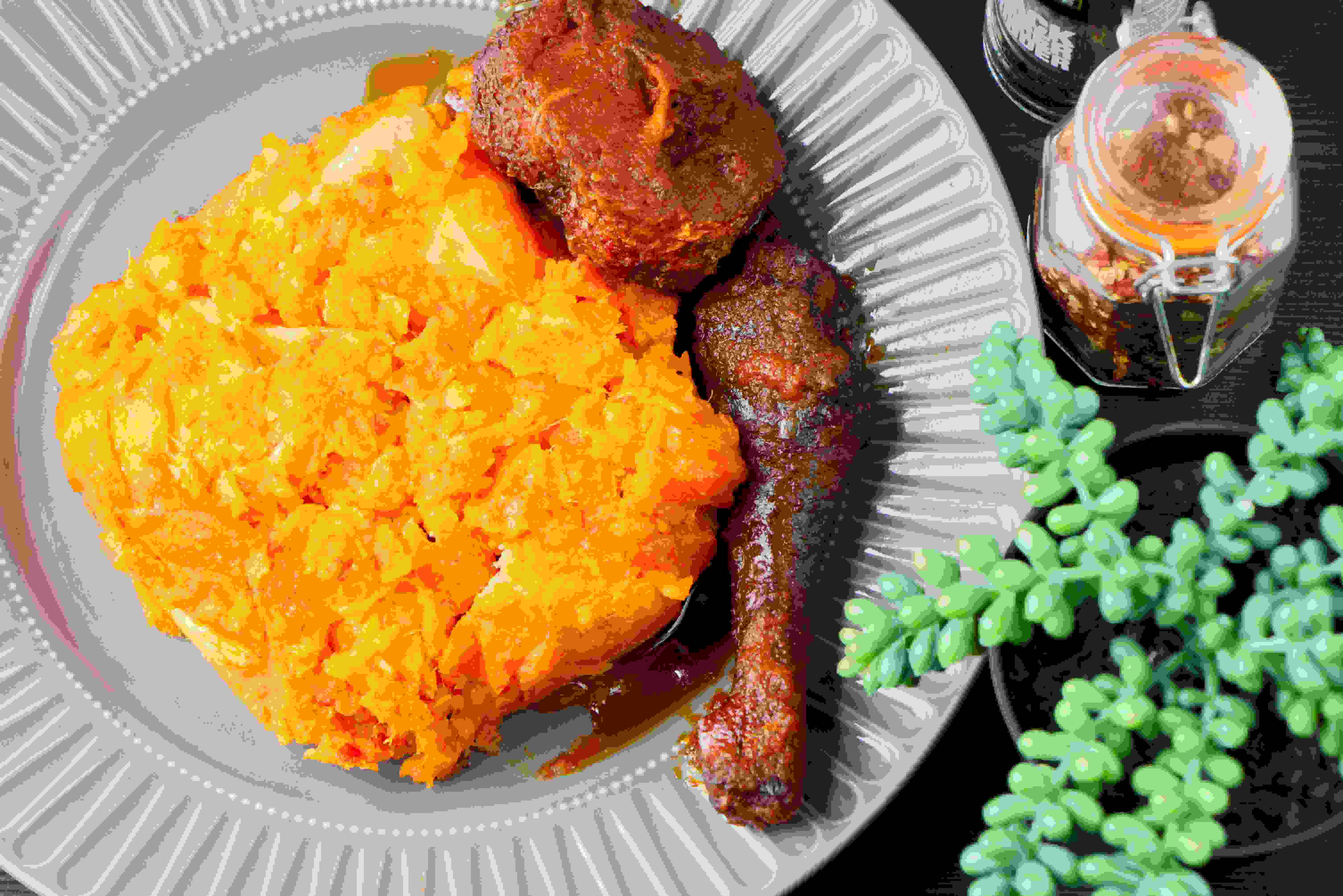 Fluffy steamed white rice served with a rich and flavourful tomato-based stew.
